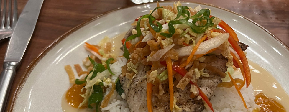 1- Cafe O'lei was easily our favorite restaurant on the whole trip. Started with some mock-tails and moved on to the appy, fried calamari steak, which I was hesitant about but it was seriously 10/10 tender and delicious. For my entree I had swordfish with a couple great sauces and it was incredible. Allie got a lamb shank that was also great. Finished it off with some of the best ice cream I've ever had and it was a near perfect Experience, especially when paired with the amazing views/location and personable service.